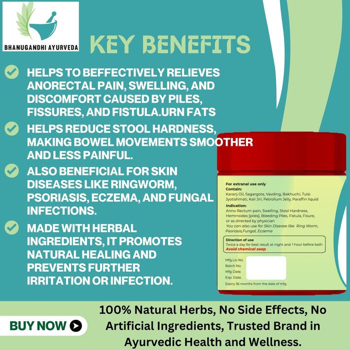 Discover relief with Bhanugandhi Ayurveda’s LV CO Cream, an Ayurvedic remedy meticulously formulated to address the discomfort of piles, fissures, and fistula. Grounded in ancient wisdom and herbal excellence, this cream soothes and heals, ensuring a natural and effective treatment. Ideal for those seeking holistic health solutions, LV CO Cream embodies our commitment to well-being and traditional Ayurvedic practices. Trust in the power of nature and make the first step towards comfortable living with Bhanugandhi Ayurveda. Experience the transformation today.